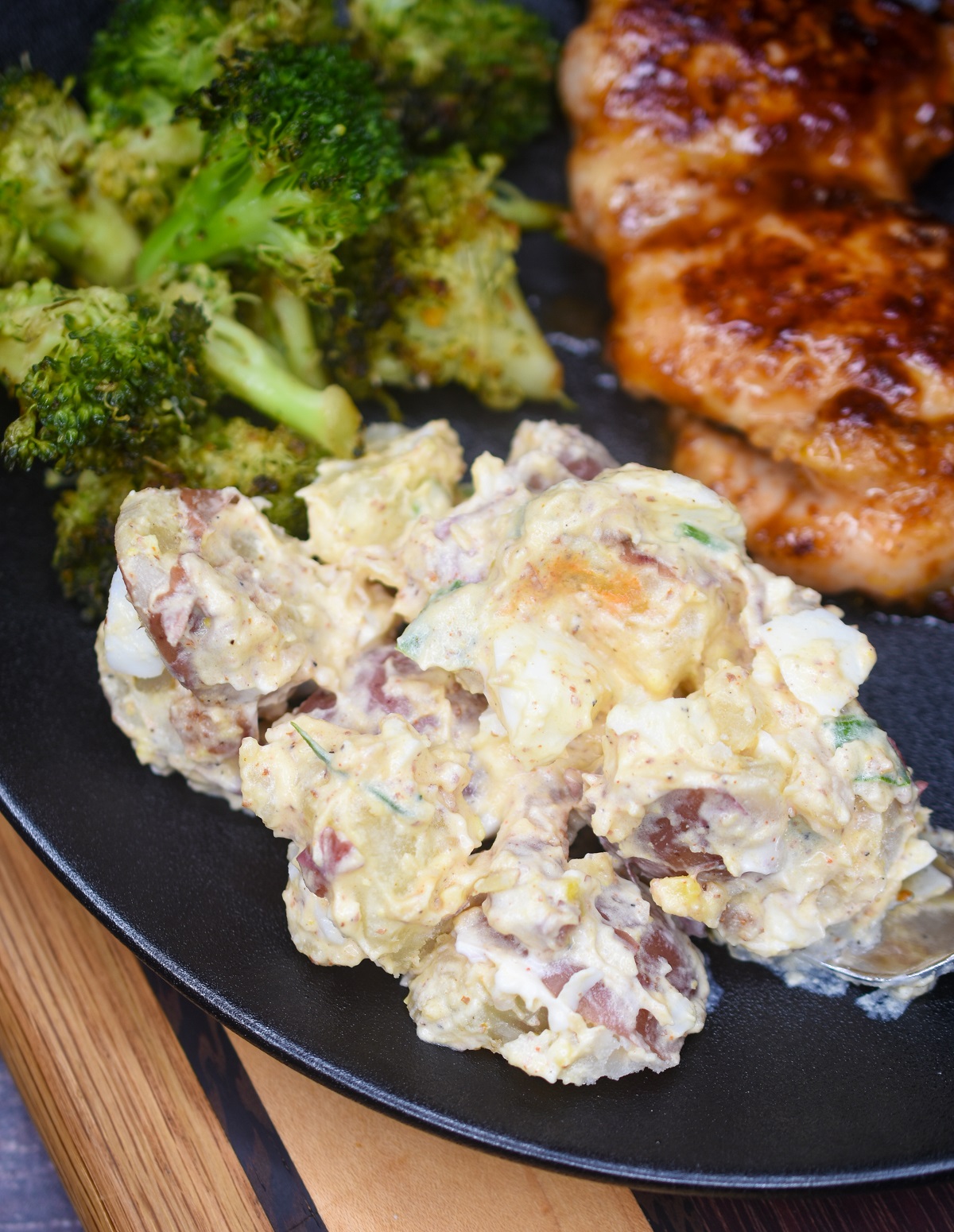 - Don't be shy with the dressing, this is meant to be a wet potato salad, not dry. Go for it!